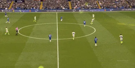 四中场变三中场,对于球和中场的控制力本身就会有所下降,虽然你可以用两个边锋的速度元素和由此形成的进攻锐度来进行弥补,但切尔西的两个边锋并不具备在曼城身上直接打出进攻的能力,所以尤其需要中路球员快速的左右衔接。