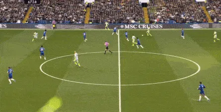 而在切尔西这边,这个半场的0-0则带有一定的迷惑性,实际上他们在中场区域输得很明显,20分钟之后就很难能再利用到罗德里身侧的空间了,但由于曼城球员的状态问题,看起来防守还算能撑得住。